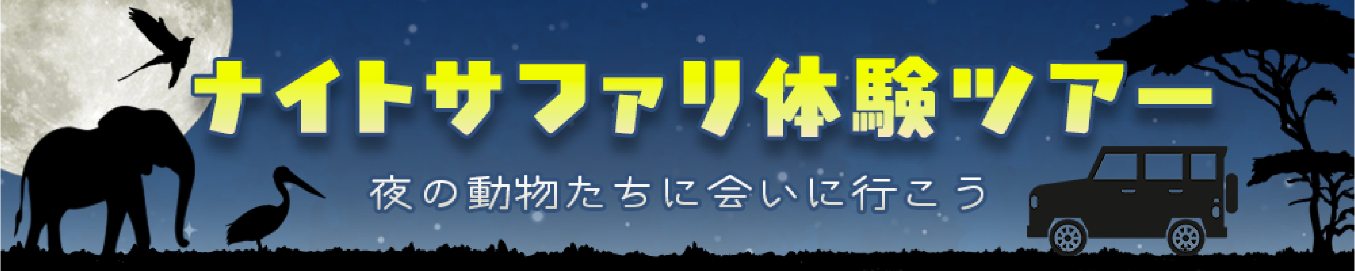アクティブな家族層や、アウトドア好きな若年層をターゲットとしたナイトサファリ体験ツアーのバナーです。